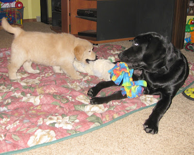 Mom and dad told me that I had to be very gentle, and I was. But, Juno does not know all the puppy play rules I follow though, and sometimes will play rough, and growl really loud. I guess we will both learn how to play together.
